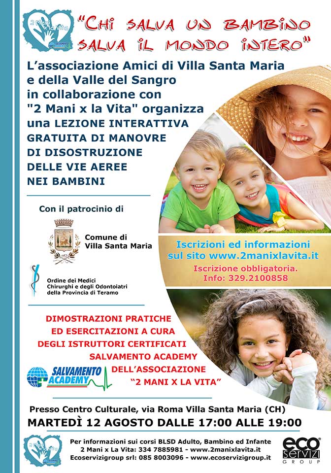"2 Mani x La Vita" con il patrocinio del comune di Villa Santa Maria, organizza una: