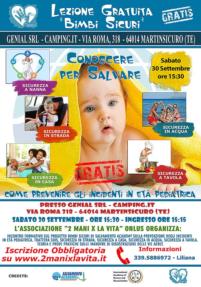 Tratterà di SIDS, sicurezza in strada, sicurezza a casa, sicurezza in acqua, sicurezza a tavola. Teoria e prove pratiche sulle manovre di disostruzione delle vie aeree.I