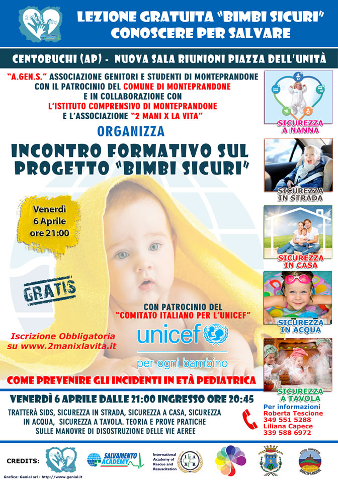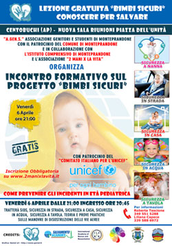 Tratterà di SIDS, sicurezza in strada, sicurezza a casa, sicurezza in acqua, sicurezza a tavola. Teoria e prove pratiche sulle manovre di disostruzione delle vie aeree.