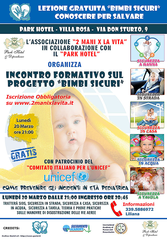 Tratterà di SIDS, sicurezza in strada, sicurezza a casa, sicurezza in acqua, sicurezza a tavola. Teoria e prove pratiche sulle manovre di disostruzione delle vie aeree.