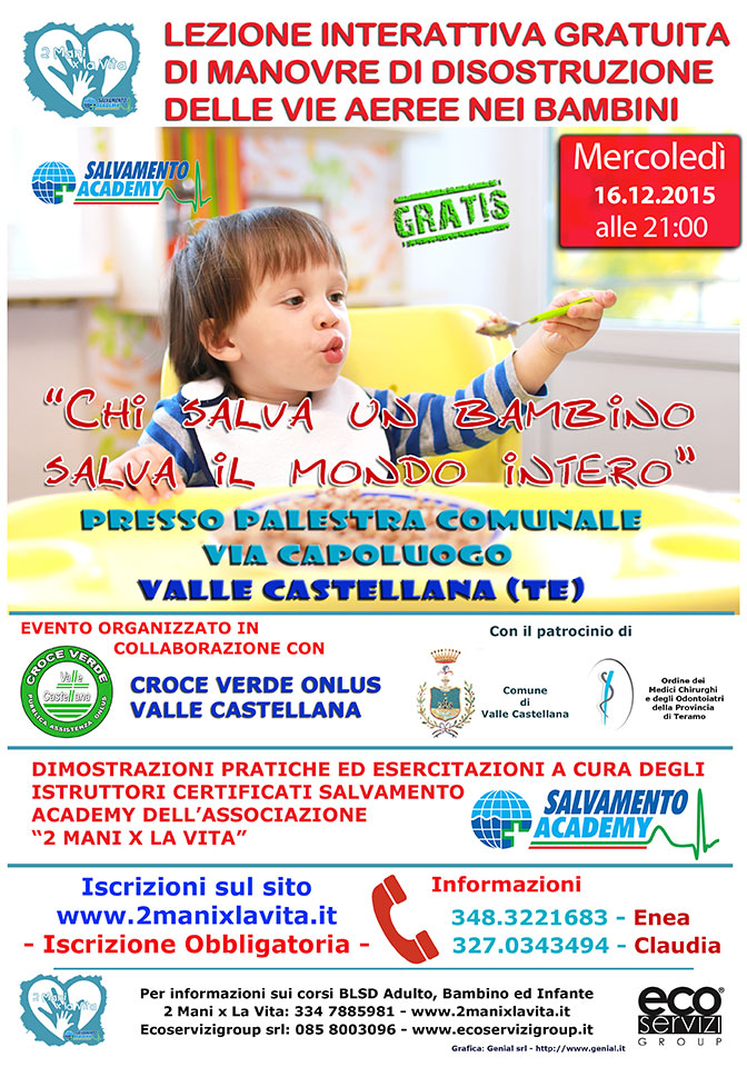 La Croce Verde di Valle Castellana, con il patrocinio del comune di Valle Castellana e dell'ordine dei Medici Chirurghi e degli Odontoiatri della provincia di Teramo,